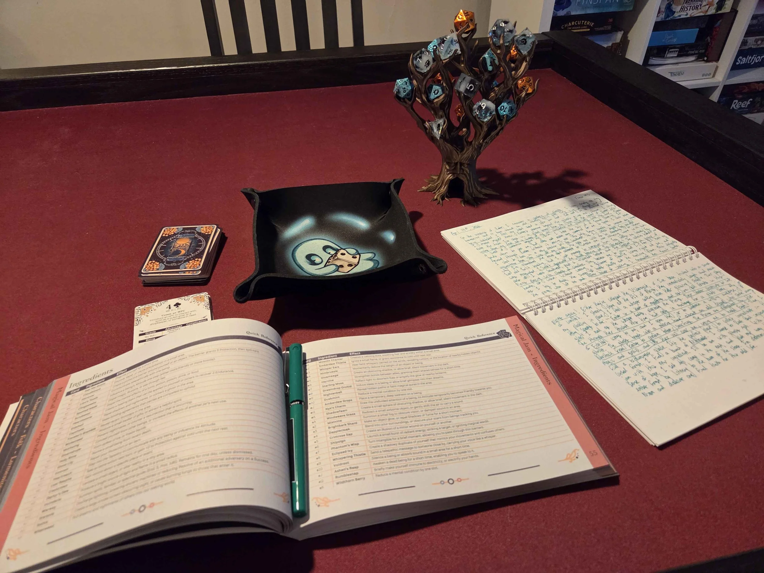 After setting out from his home of Flickerfen, Fresco decided to make camp on the outskirts of a town called Ember. Ember is settled in a ring around an ancient tree root, with dryads and treants surrounding the vast expanse of forests stemming from Ember’s center. As dawn broke, Fresco was awoken to the sound of… singing? A group of ghosts—always ghosts sang true stories in Song—were humming a tale of an old Twilit enroute to discover a truth he may regret or worse. Fresco felt a chill; the ghosts were singing about him in the past, present, and future.